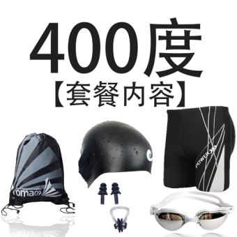 Online E men's swimming trunks boxer short fashion models goggles (Black + 610 gray 400 + Nose Ear + plastic cap + bag) Black) in Singapore